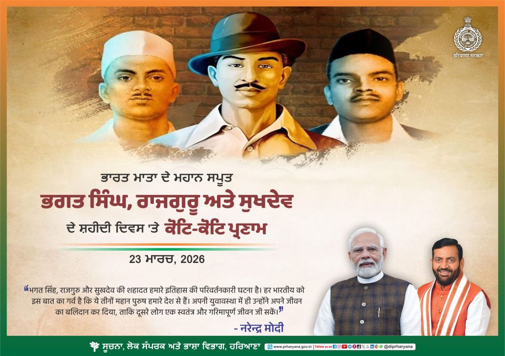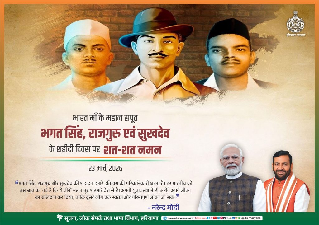 शहीदी दिवस (भगत सिंह, राजगुरु और सुखदेव) 23 मार्च, 2026. (24.03.2026)