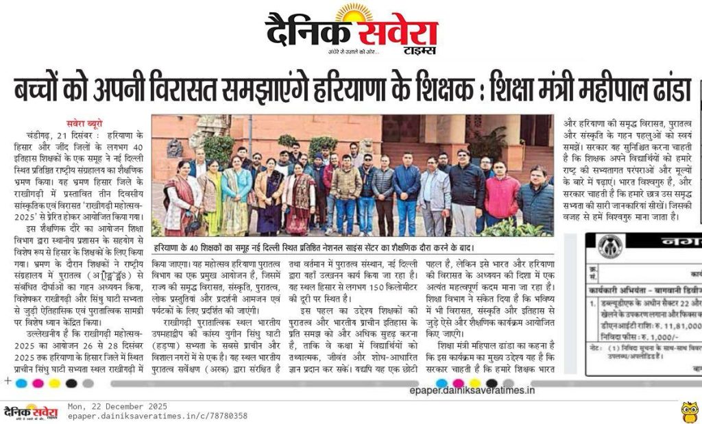 [News at a Glance] बच्चों को अपनी विरासत समझाएंगे हरियाणा के शिक्षक : शिक्षा मंत्री महीपाल ढांडा. (22.12.2025)