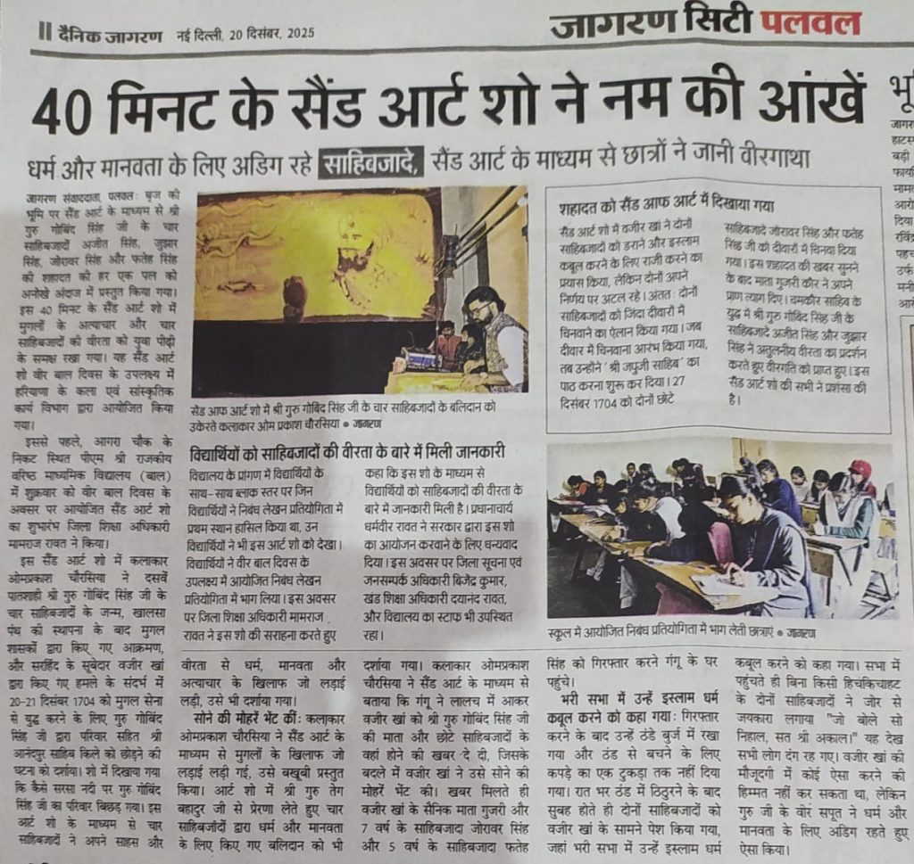 [News at a Glance] सेंड आर्ट शो के माध्यम से वीर साहिबजादे की वीर गाथा का किया चित्रण (Palwal) (20.12.2025)